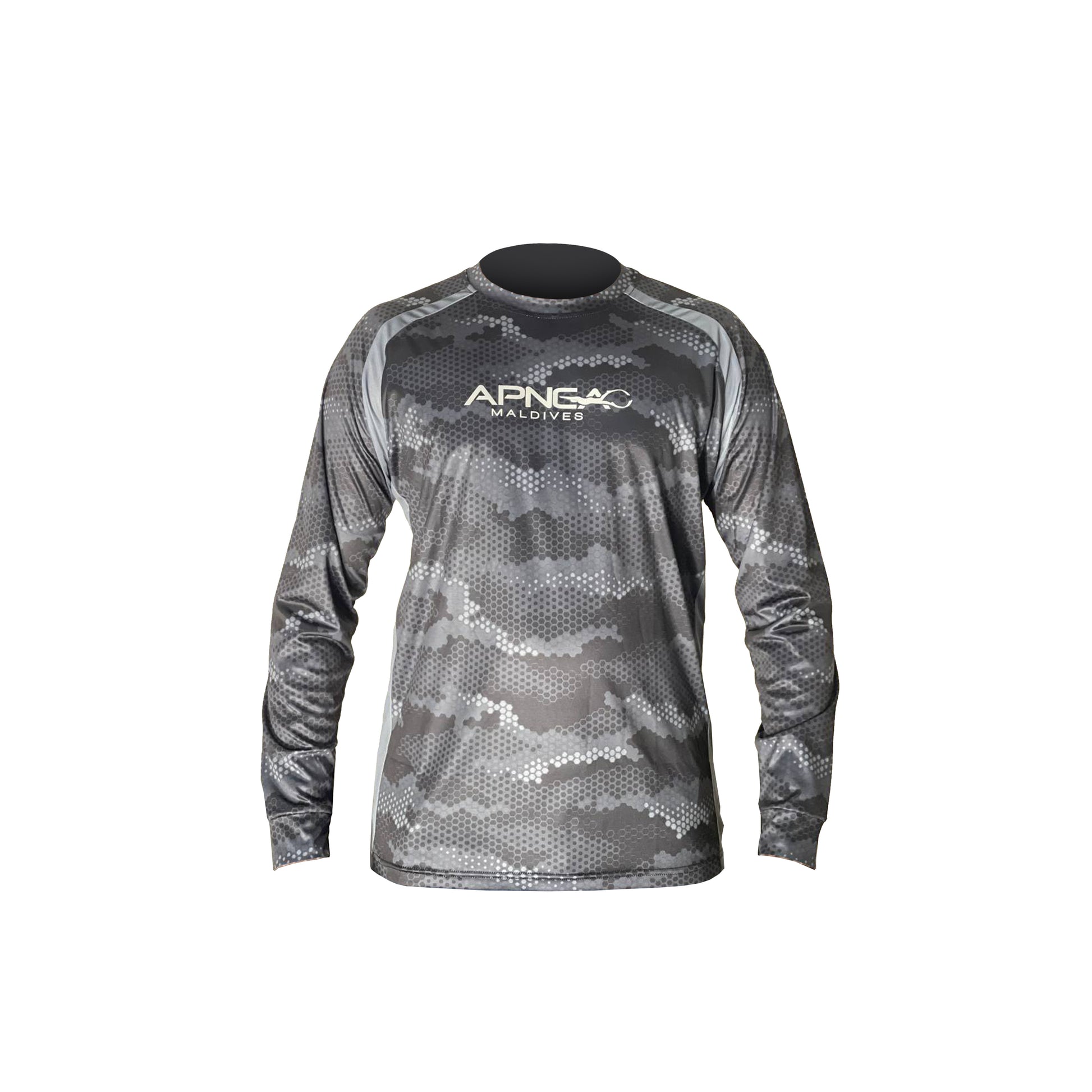 Apnea Fishing Shirt, meticulously designed by Apnea Maldives. Crafted with the utmost care, this shirt is your ultimate companion for a comfortable fishing experience. Made from premium polyester, it offers exceptional breathability, allowing you to stay cool during those long fishing trips. The shirt also incorporates built-in sun protection, ensuring your skin remains shielded from harmful UV rays. Whether you're on the boat or the shoreline, the Apnea Fishing Shirt combines style and functionality, making it the ideal choice for anglers who demand both performance and comfort.