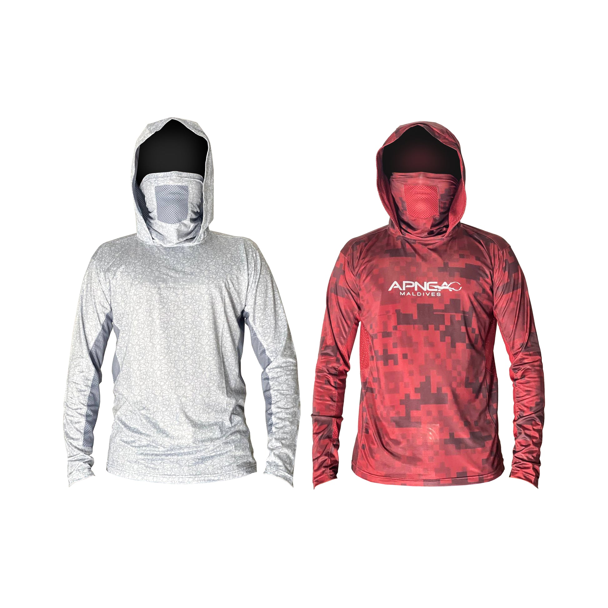 Apnea Fishing Shirt, a creation of Apnea Maldives. This exceptional shirt combines style and function with its appealing camouflage design. Crafted for avid anglers, it provides outstanding comfort and breathability, thanks to its premium polyester fabric. What sets it apart is the integrated sun protection, shielding you from harmful UV rays. But there's more – this shirt features a convenient hood and a face shield for added protection, making it the ideal choice for sun-soaked fishing expeditions. Stay comfortable, stay protected, and stay in style with the Apnea Fishing Shirt, your ultimate companion for a day on the water.