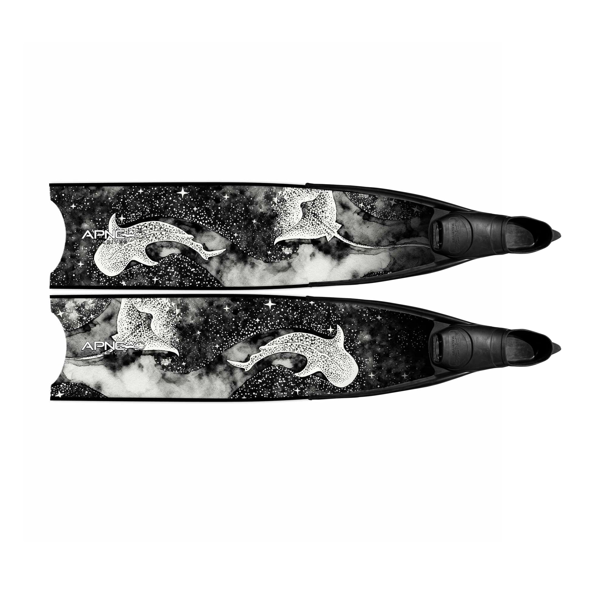 Apnea Fins - Midnight in Black, a harmonious blend of elegance and functionality, meticulously crafted for underwater enthusiasts. Developed by Apnea Maldives and precision-engineered in Europe, Estonia, these diving blades redefine excellence in design and performance.