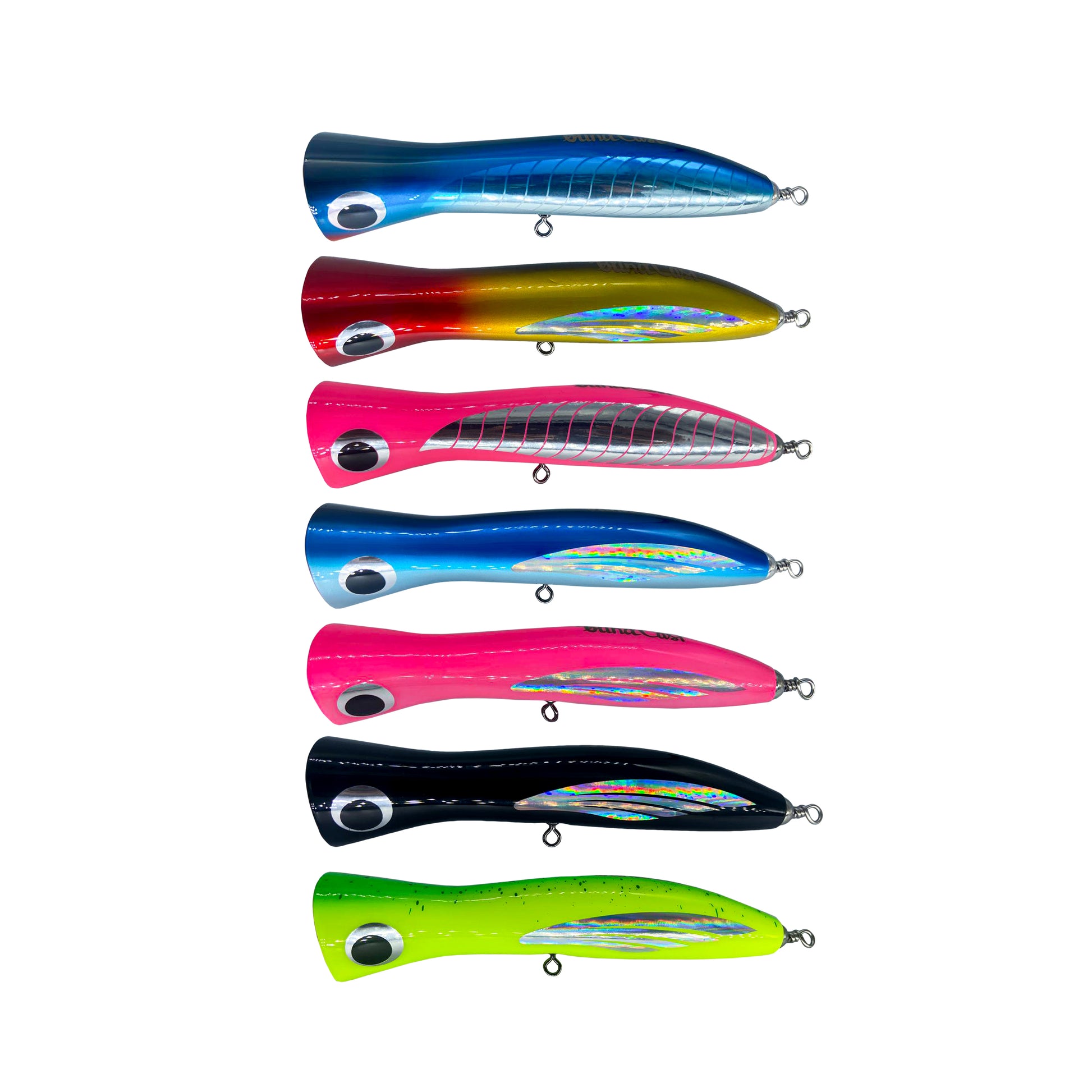 Blind Cast Pro Popper, meticulously engineered for precision in reef casting. At 180mm length and 80g weight, this lure is tailor-made for reef environments, ensuring optimal performance. The large cup creates a distinctive popping effect, making it irresistible to an array of reef-dwelling species such as red snapper, Blue fin Trevally, Napoleon, Groupers, Job Fish, as well as versatile enough for blue water casting. Adorned with silver wings that shimmer from a distance, it's an alluring bait for an extensive range of predators including tuna, marlin, GT, Mahi Mahi, and Wahoo. Dive into the world of Blind Cast Pro Popper, where innovation meets versatility, providing anglers with the ultimate tool to conquer both reef and open waters. Elevate your fishing experience with a lure designed to entice and triumph over a diverse spectrum of aquatic adversaries.